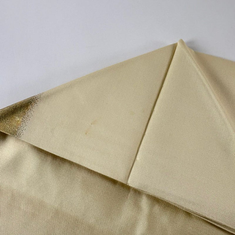 セミフォーマルでお使いいただける名古屋帯でございます。 見る人に重たい印象を感じさせない女性ならではの、気品豊かな一品です。 垂境にシミ、お太鼓付近など表地所々に箔の変色がございます。 リユース品としては良い状態で、まだまだご活用頂けると思われます。 ※なお、厳しく商品の状態確認を行っておりますが、記載の汚れ以外にも見落とし箇所がある可能性がある旨ご了承いただけますと幸いです。 沢山の商品の中からご覧いただき誠にありがとうございます。