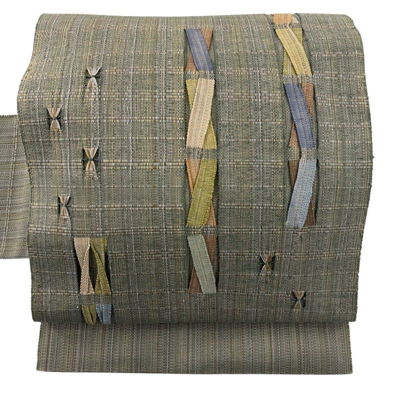 【名古屋帯】 灰色系 灰緑 秀品 A 帯丈366cm~400cm 9990-29990 美品 二万以下