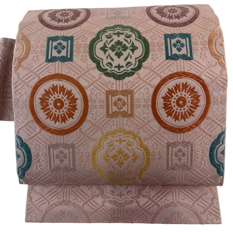 【名古屋帯】 赤系 薄ピンク 秀品 B 帯丈356cm~365cm 7990-9980 二万以下