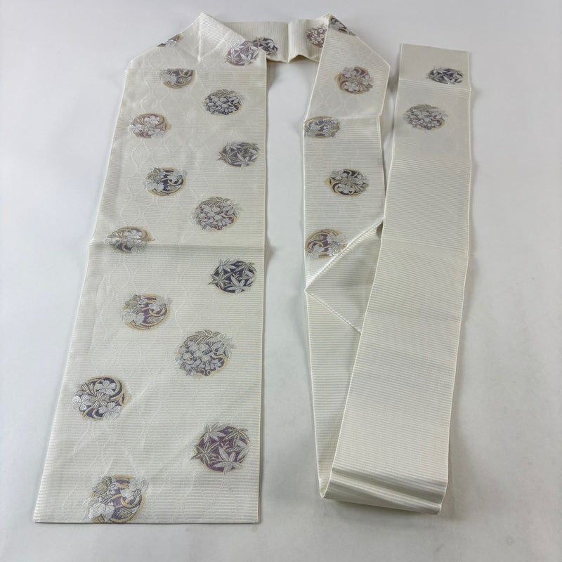 【名古屋帯】 白系 クリーム 秀品 A 帯丈366cm~400cm 9990-29990 美品 二万以下