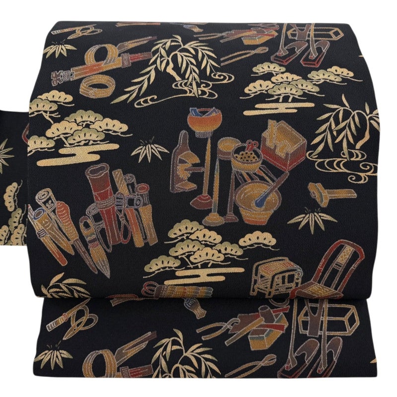 【名古屋帯】 黒系 黒 名品 A 帯丈366cm~400cm 9990-29990 美品 二万以下