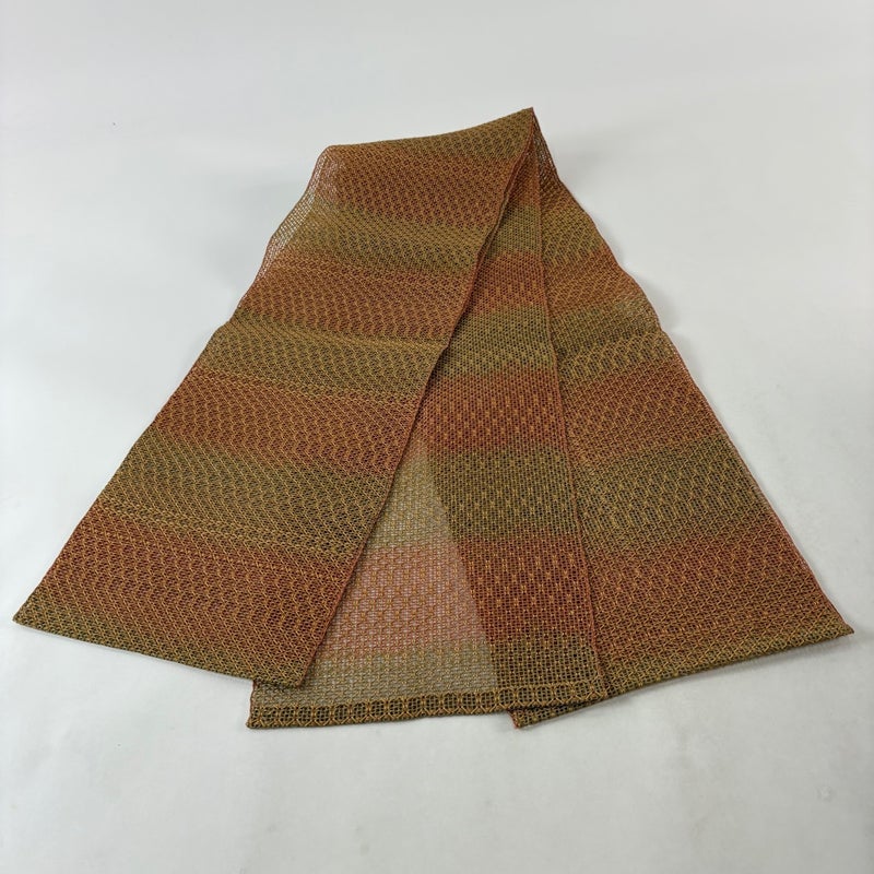 夏帯でございます。 普段使いでお使いいただける名古屋帯でございます。 カジュアルな装いに合わせてお使いください。 リユース品としては目立った染み傷なく、状態の良いお品でございます。 ※なお、厳しく商品の状態確認を行っておりますが、記載の汚れ以外にも見落とし箇所がある可能性がある旨ご了承いただけますと幸いです。 沢山の商品の中からご覧いただき誠にありがとうございます。
