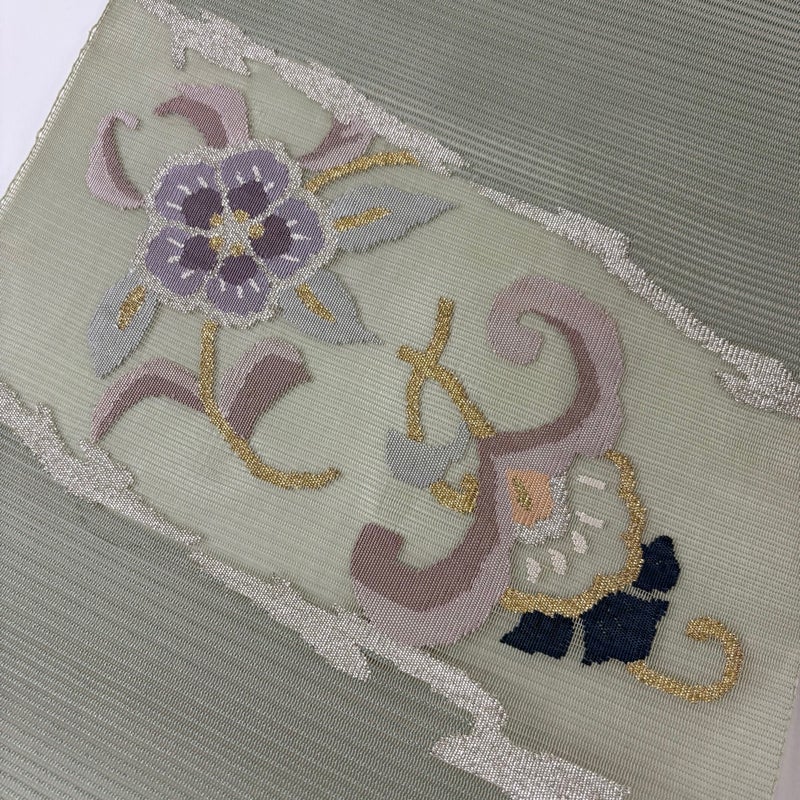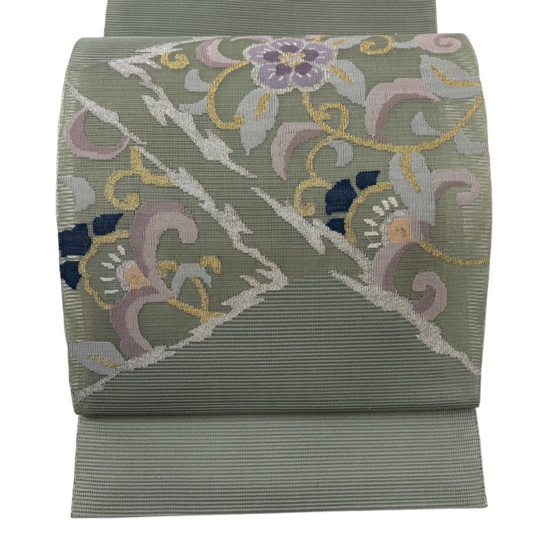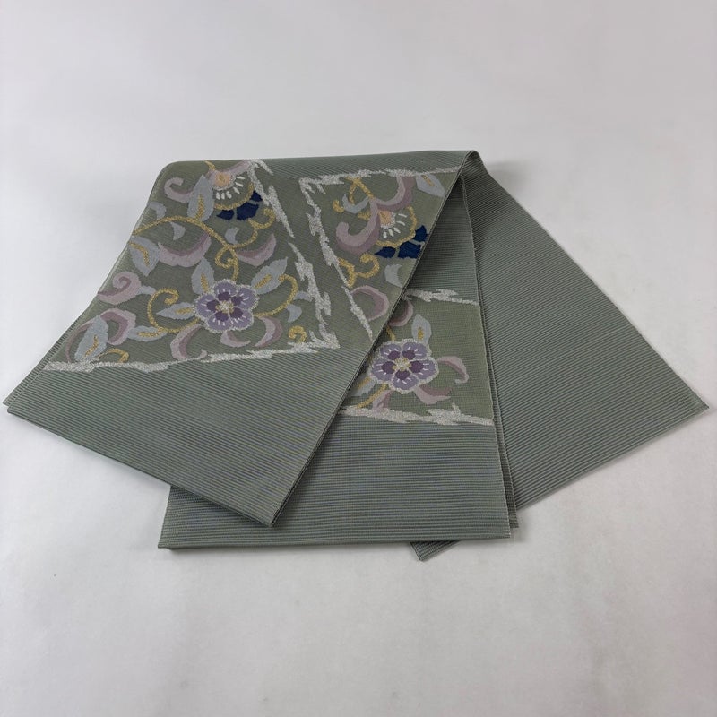 【名古屋帯】 灰色系 灰緑 秀品 A 帯丈366cm~400cm 9990-29990 美品 二万以下
