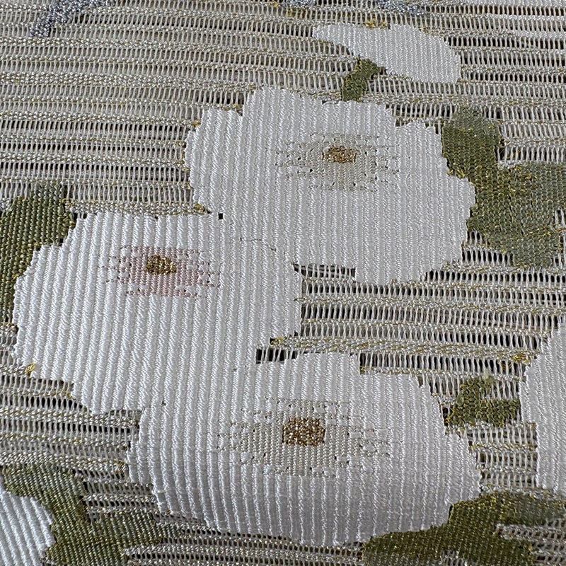 セミフォーマルでお使いいただける名古屋帯でございます。 見る人に重たい印象を感じさせない女性ならではの、気品豊かな一品です。 夏帯でございます。 締め跡がございます。 お太鼓柄部分にシミ、前柄お太鼓間に小さなシミがございます。 リユース品としては良い状態で、まだまだご活用頂けると思われます。 ※なお、厳しく商品の状態確認を行っておりますが、記載の汚れ以外にも見落とし箇所がある可能性がある旨ご了承いただけますと幸いです。 沢山の商品の中からご覧いただき誠にありがとうございます。
