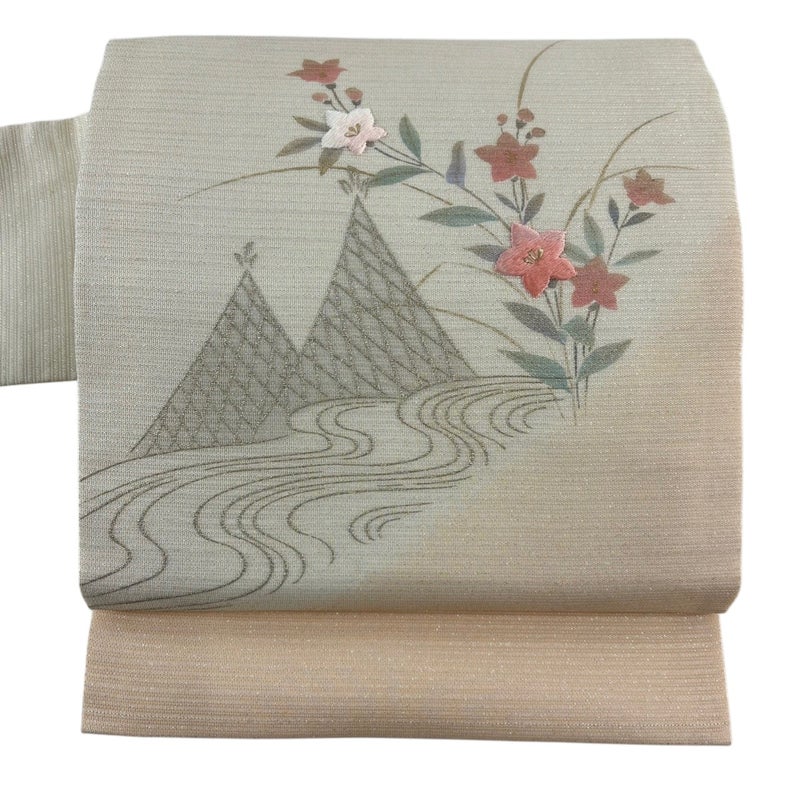 【着物ランク】秀品 【素材】正絹 【帯丈】約362cm 【帯幅】約31.5cm 【帯仕立て】仕立て上がり 【状態ランク】ランクB 【帯着用シーン】セミフォーマル(色無地・付下げ)