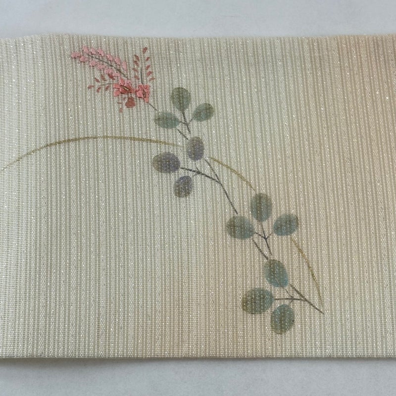 夏帯でございます。 セミフォーマルでお使いいただける名古屋帯でございます。 見る人に重たい印象を感じさせない女性ならではの、気品豊かな一品です。 締め跡がございます。 お太鼓と前柄に若干金銀彩の変色がございます。 リユース品としては良い状態で、まだまだご活用頂けると思われます。 ※なお、厳しく商品の状態確認を行っておりますが、記載の汚れ以外にも見落とし箇所がある可能性がある旨ご了承いただけますと幸いです。 沢山の商品の中からご覧いただき誠にありがとうございます。