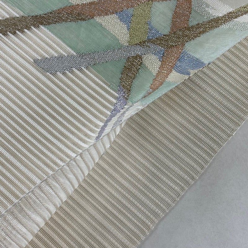 夏帯でございます。 セミフォーマルでお使いいただける名古屋帯でございます。 見る人に重たい印象を感じさせない女性ならではの、気品豊かな一品です。 締め跡がございます。 手先前柄間に薄いシミ、お太鼓と前柄に金銀糸の変色がございます。 リユース品としては良い状態で、まだまだご活用頂けると思われます。 ※なお、厳しく商品の状態確認を行っておりますが、記載の汚れ以外にも見落とし箇所がある可能性がある旨ご了承いただけますと幸いです。 沢山の商品の中からご覧いただき誠にありがとうございます。
