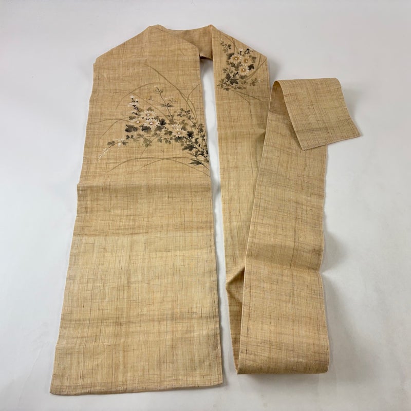 【着物ランク】名品 【素材】麻 【帯丈】約354cm 【帯幅】約32cm 【帯仕立て】仕立て上がり 【状態ランク】ランクB 【帯着用シーン】普段使いの洒落帯(紬・小紋)