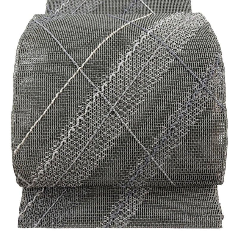 【名古屋帯】 灰色系 灰緑 名品 B 帯丈355cm以下 9990-29990 五万以下