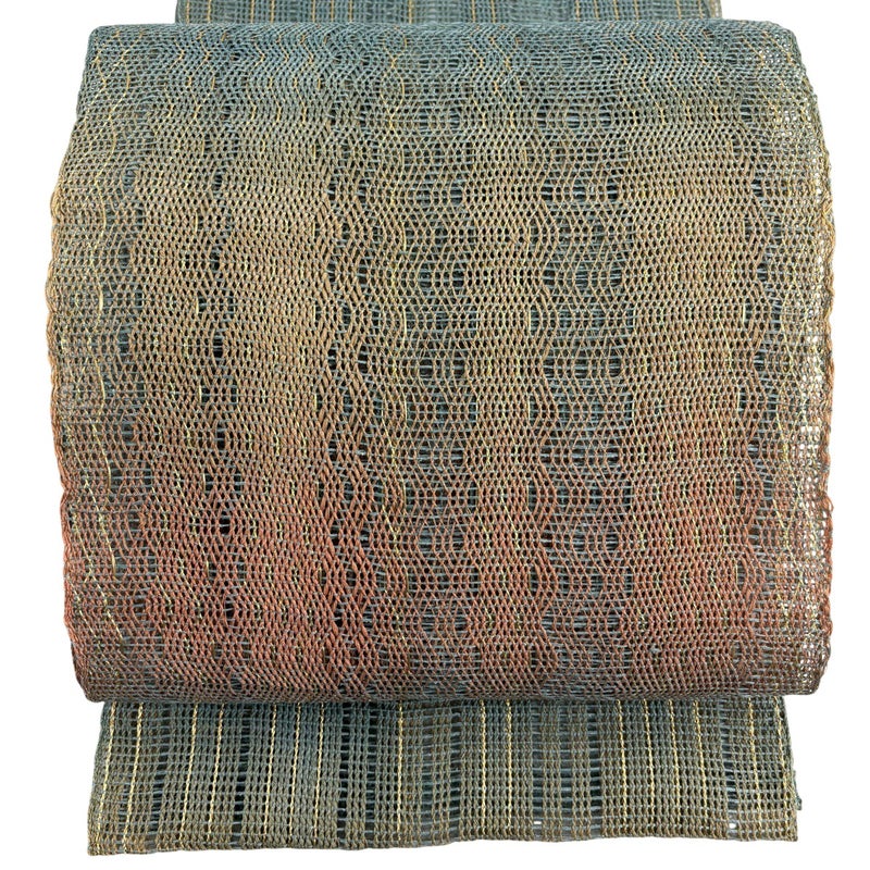 夏帯でございます。 セミフォーマルでお使いいただける名古屋帯でございます。 見る人に重たい印象を感じさせない女性ならではの、気品豊かな一品です。 帯芯が入っておりません。 手先前柄間に生地のヨレ、前柄お太鼓間にシワがございます。 リユース品としては目立った染み傷なく、状態の良いお品でございます。 ※なお、厳しく商品の状態確認を行っておりますが、記載の汚れ以外にも見落とし箇所がある可能性がある旨ご了承いただけますと幸いです。 沢山の商品の中からご覧いただき誠にありがとうございます。