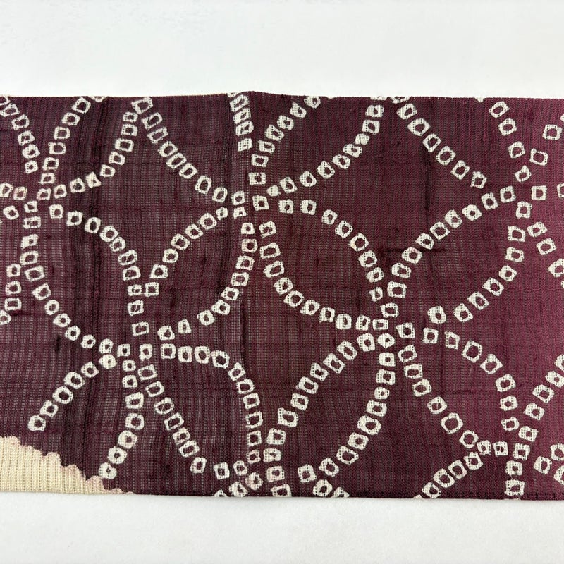 夏帯でございます。 普段使いでお使いいただける名古屋帯でございます。 カジュアルな装いに合わせてお使いください。 締め跡がございます。 リユース品としては良い状態で、まだまだご活用頂けると思われます。 ※商品の仕立て上、垂先から裏地がはみ出ております。 ※なお、厳しく商品の状態確認を行っておりますが、記載の汚れ以外にも見落とし箇所がある可能性がある旨ご了承いただけますと幸いです。 沢山の商品の中からご覧いただき誠にありがとうございます。