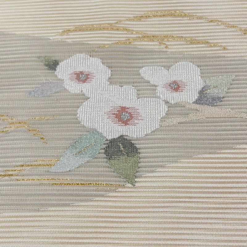 【着物ランク】秀品 【素材】正絹 【帯丈】約359.5cm 【帯幅】約30.5cm 【帯仕立て】仕立て上がり 【状態ランク】ランクB 【帯着用シーン】セミフォーマル(色無地・付下げ)