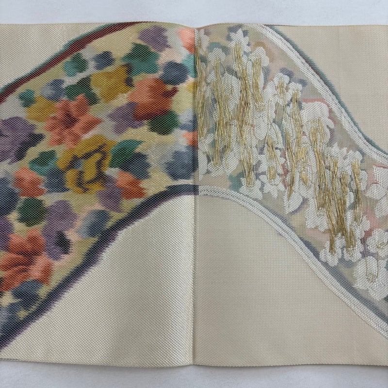 【名古屋帯】 白系 ベージュ 優品 B 帯丈356cm~365cm -3980 二万以下