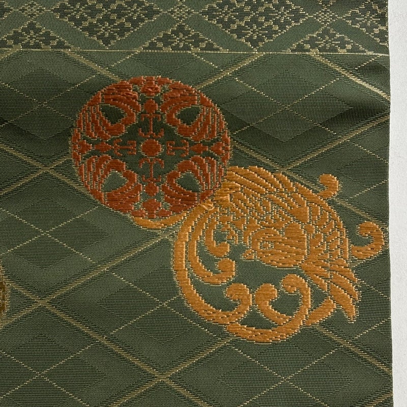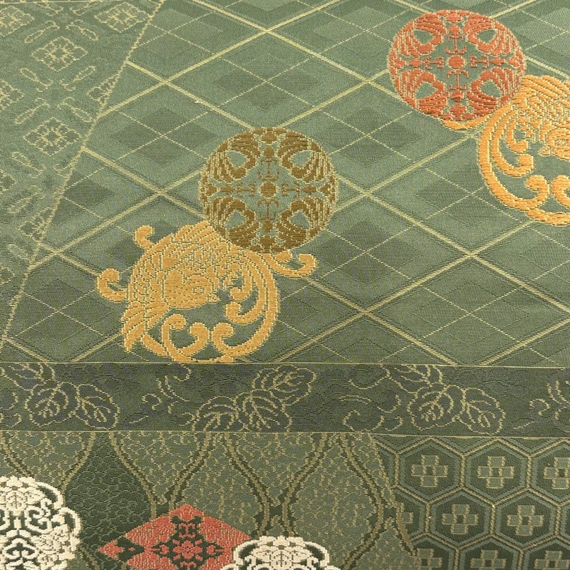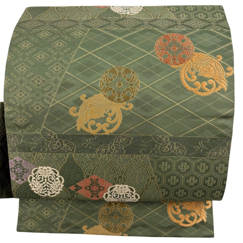 【名古屋帯】 緑系 緑 優品 B 帯丈355cm以下 -3980 二万以下