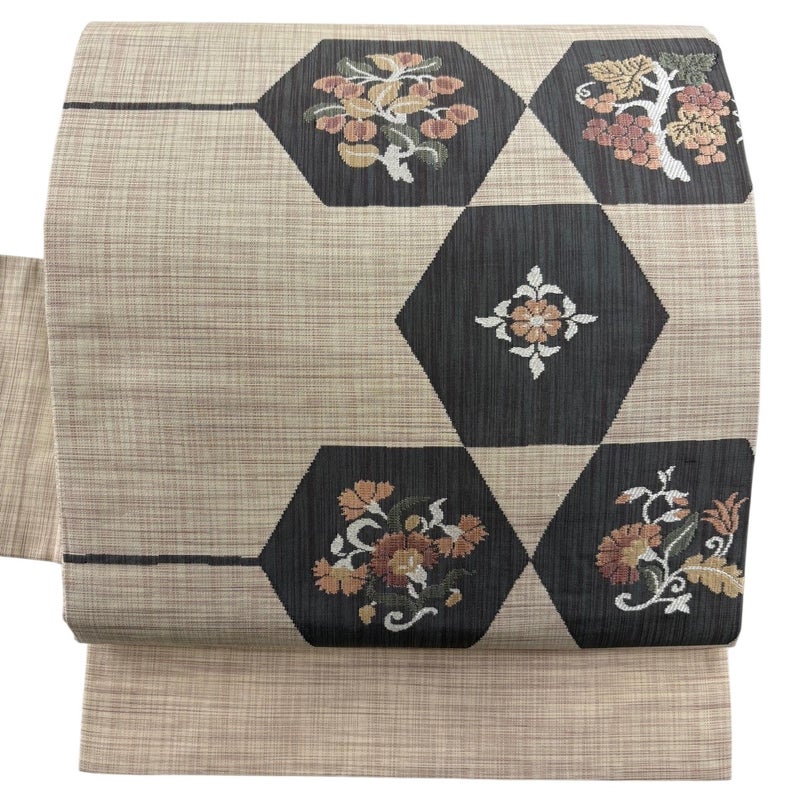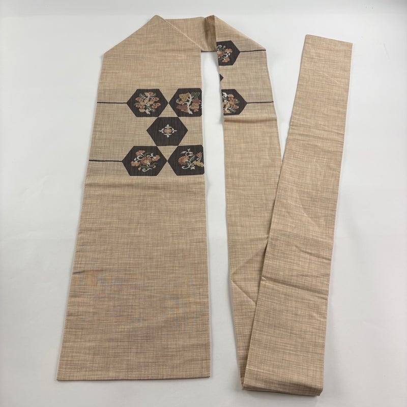 【名古屋帯】 白系 ベージュ 優品 A 帯丈356cm~365cm 4000-7980 美品 二万以下