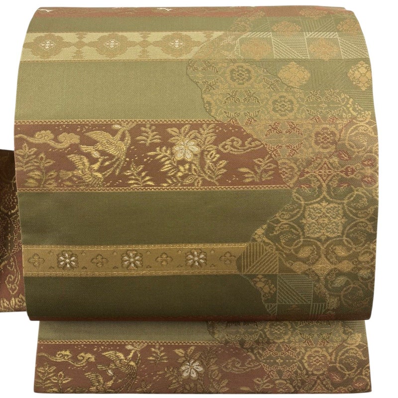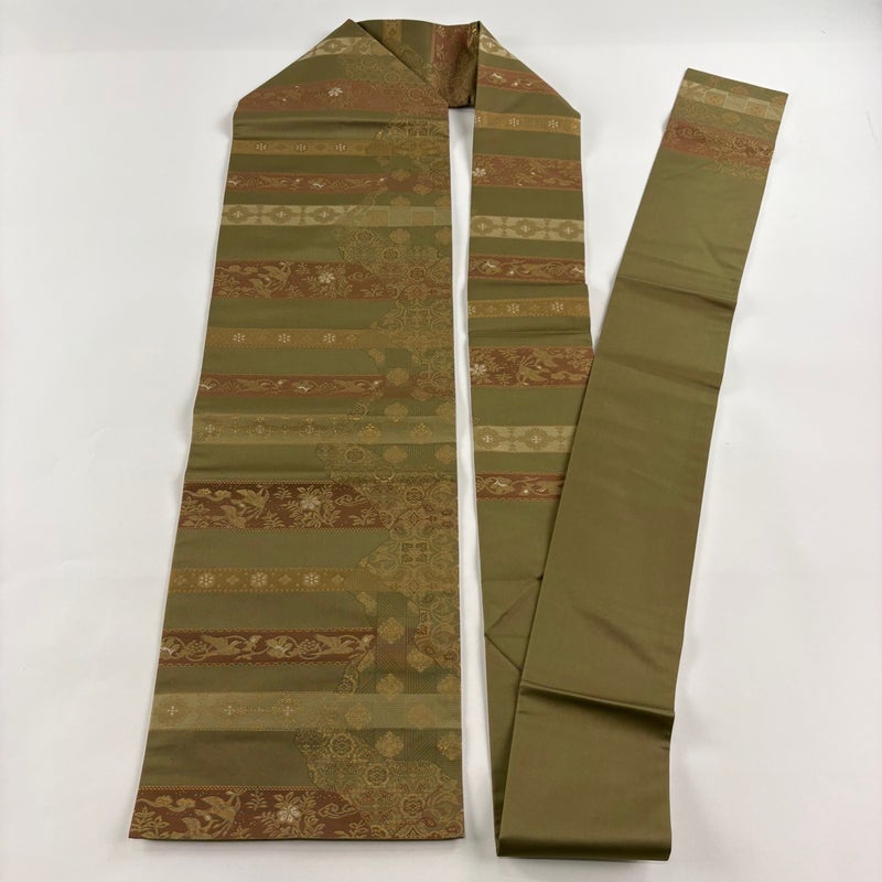 【名古屋帯】 緑系 鶯色 優品 A 帯丈356cm~365cm 4000-7980 美品 二万以下