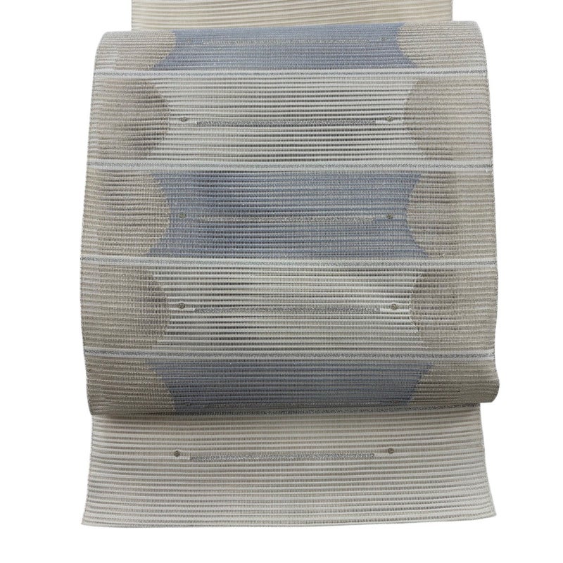 夏帯でございます。 セミフォーマルでお使いいただける名古屋帯でございます。 見る人に重たい印象を感じさせない女性ならではの、気品豊かな一品です。 ※強い締め跡がございます。 前柄お太鼓間と前柄垂境間にシワがございます。 リユース品としては良い状態で、まだまだご活用頂けると思われます。 ※なお、厳しく商品の状態確認を行っておりますが、記載の汚れ以外にも見落とし箇所がある可能性がある旨ご了承いただけますと幸いです。 沢山の商品の中からご覧いただき誠にありがとうございます。