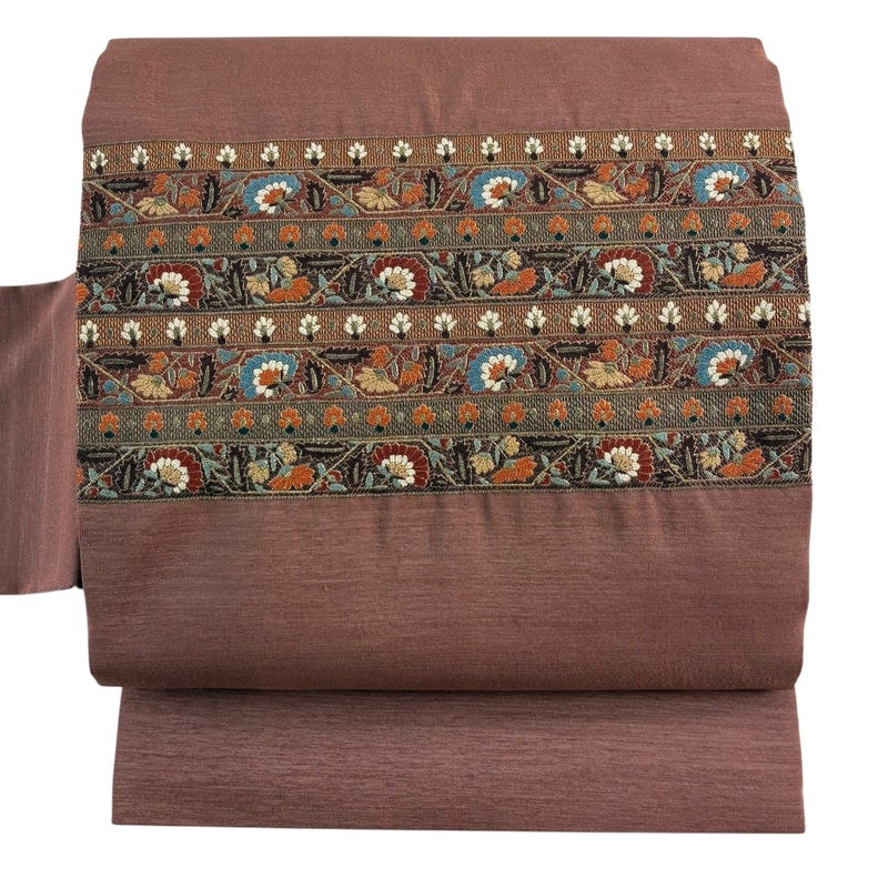 【着物ランク】秀品 【素材】正絹 【帯丈】約379.5cm 【帯幅】約30.5cm 【帯仕立て】仕立て上がり 【状態ランク】ランクB 【帯着用シーン】セミフォーマル(色無地・付下げ)