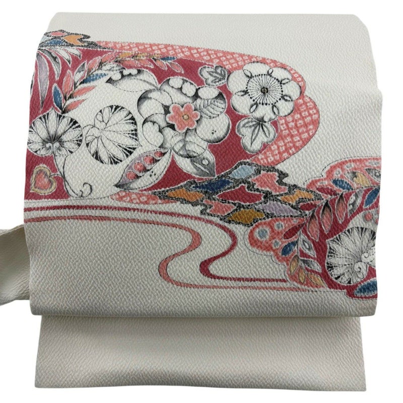 【名古屋帯】 白系 クリーム 秀品 A 帯丈356cm~365cm 9990-29990 美品 二万以下