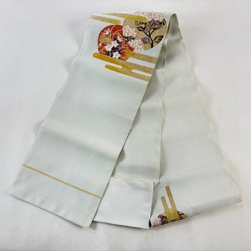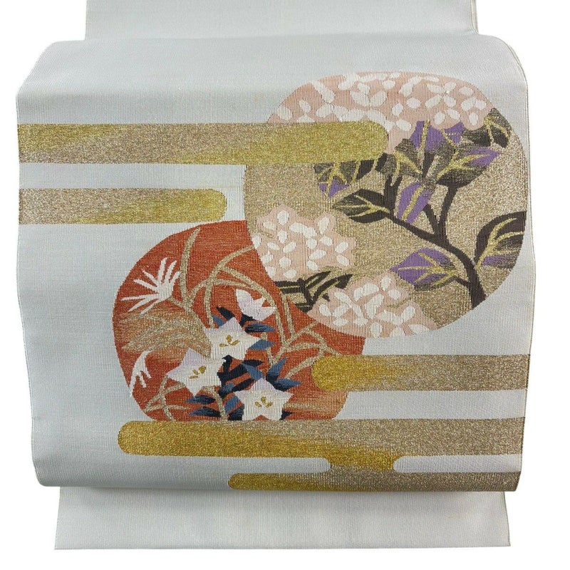 【着物ランク】秀品 【素材】正絹 【帯丈】約364.5cm 【帯幅】約30.5cm 【帯仕立て】仕立て上がり 【状態ランク】ランクC 【帯着用シーン】セミフォーマル(色無地・付下げ)