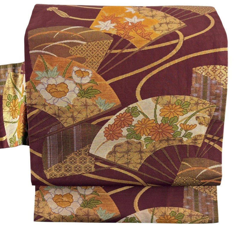 【名古屋帯】 赤系 小豆色 優品 A 帯丈356cm~365cm 4000-7980 美品 二万以下