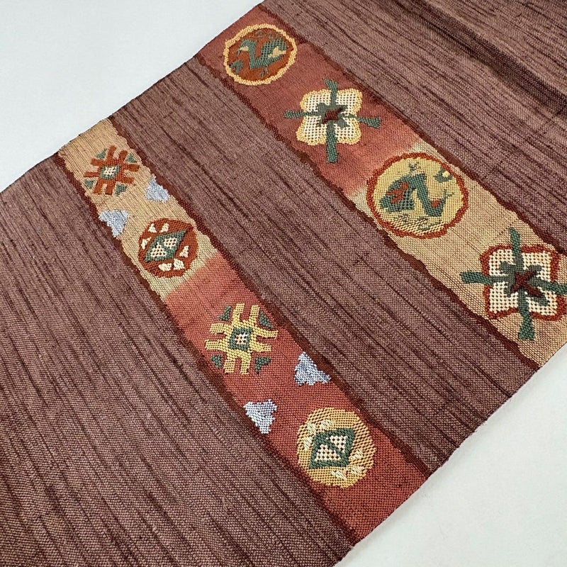 【名古屋帯】 赤系 小豆色 優品 A 帯丈355cm以下 4000-7980 美品 二万以下