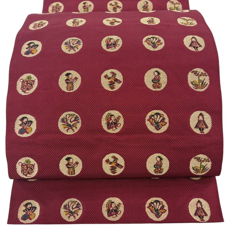 【名古屋帯】 赤系 えんじ色 優品 B 帯丈356cm~365cm -3980 二万以下