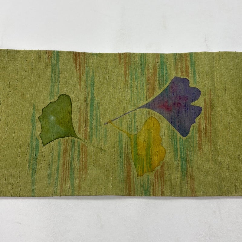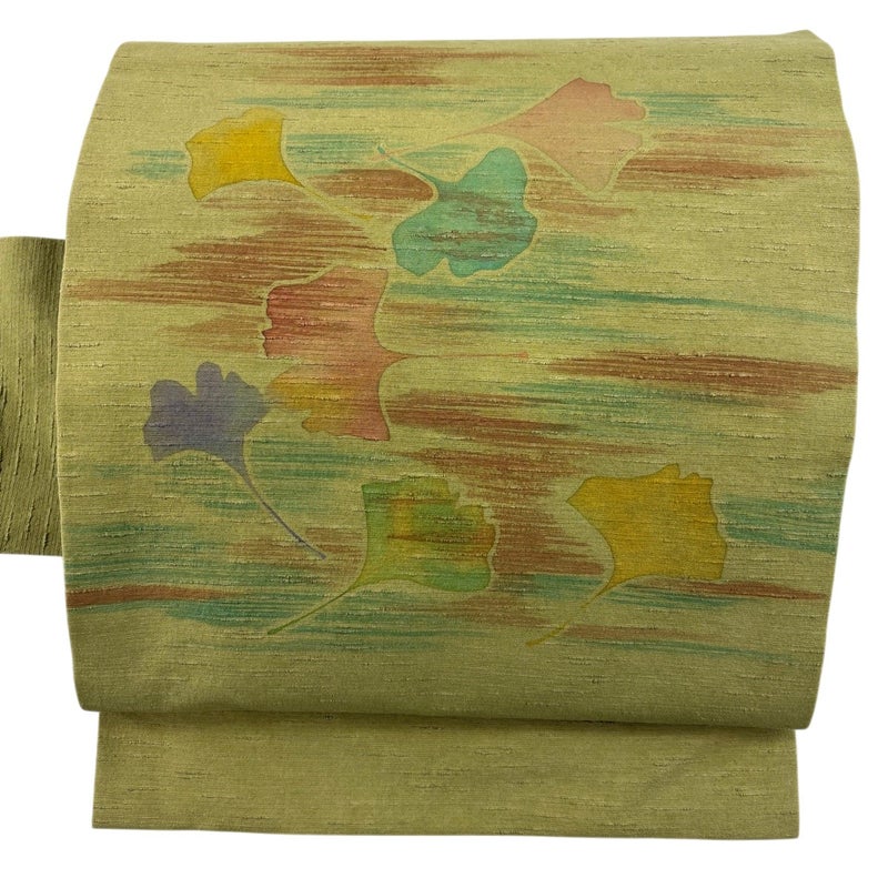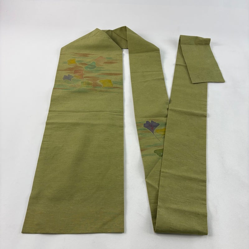 【名古屋帯】 緑系 よもぎ色 優品 B 帯丈356cm~365cm -3980 二万以下
