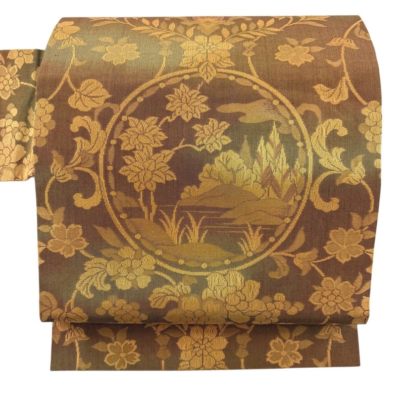 【着物ランク】優品 【素材】正絹 【帯丈】約353.5cm 【帯幅】約30.5cm 【帯仕立て】仕立て上がり 【状態ランク】ランクA 【帯着用シーン】セミフォーマル(色無地・付下げ)