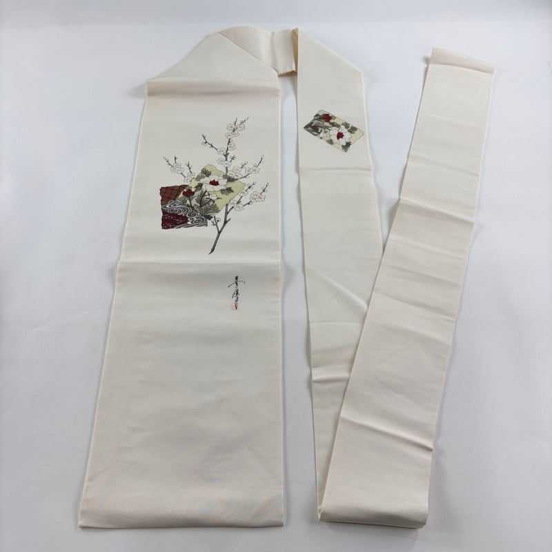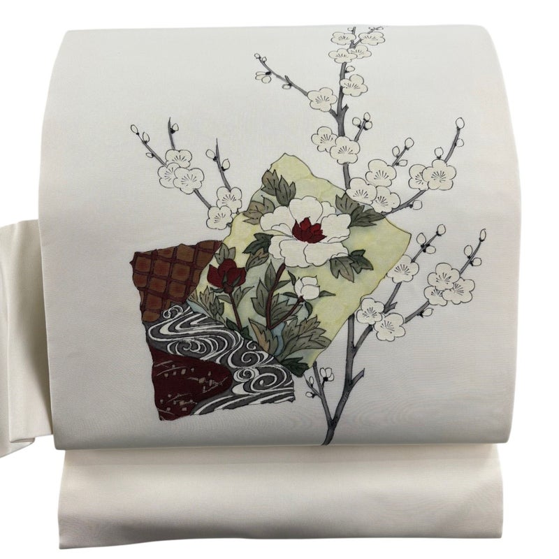 【名古屋帯】 白系 クリーム 優品 B 帯丈366cm~400cm -3980 二万以下