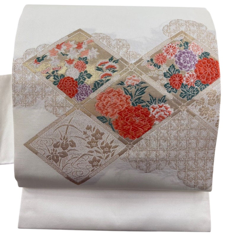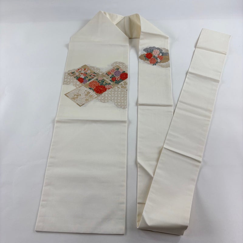【名古屋帯】 白系 クリーム 優品 B 帯丈355cm以下 -3980 二万以下