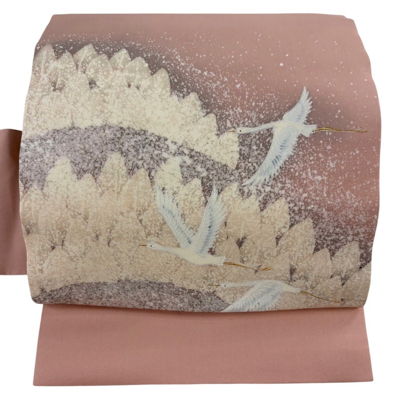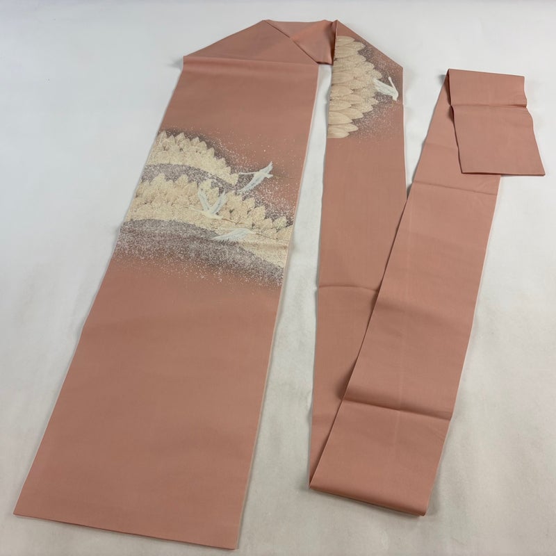【名古屋帯】 赤系 ピンクベージュ 優品 B 帯丈356cm~365cm -3980 二万以下