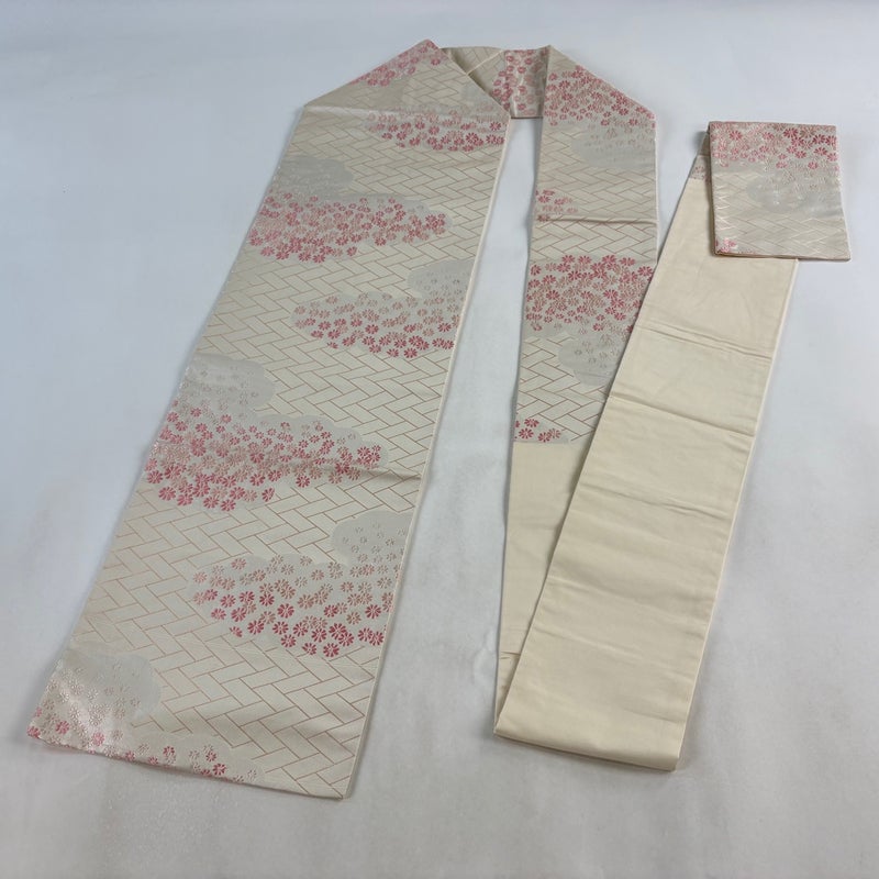 【名古屋帯】 白系 クリーム 優品 A 帯丈355cm以下 4000-7980 美品 二万以下