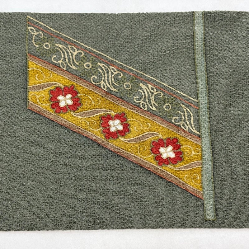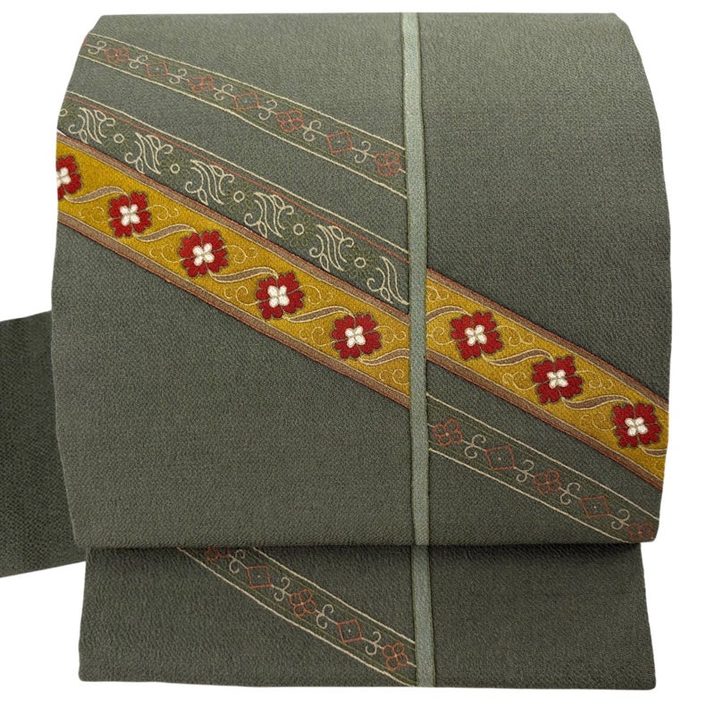 【名古屋帯】 灰色系 灰緑 優品 B 帯丈366cm~400cm -3980 二万以下