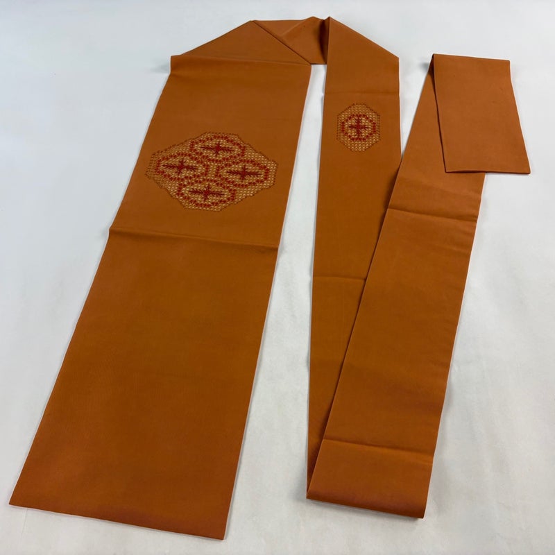 【名古屋帯】 赤系 オレンジ 優品 B 帯丈356cm~365cm -3980 二万以下
