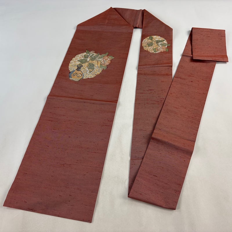 【名古屋帯】 赤系 赤茶 優品 A 帯丈355cm以下 4000-7980 美品 二万以下