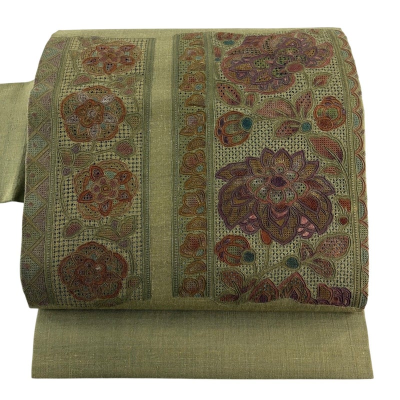 【名古屋帯】 灰色系 灰緑 秀品 B 帯丈356cm~365cm 7990-9980 二万以下
