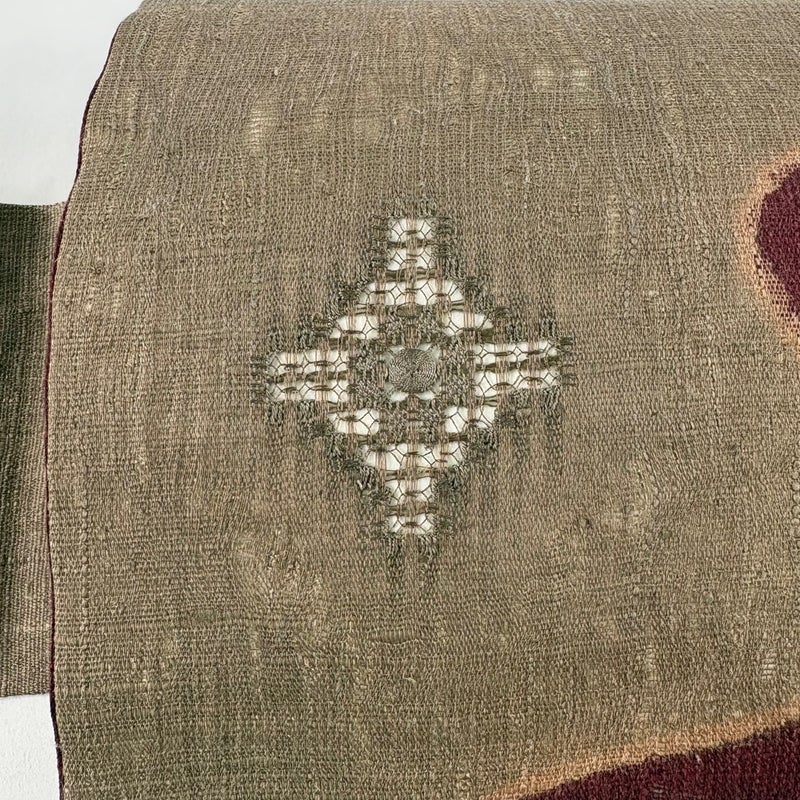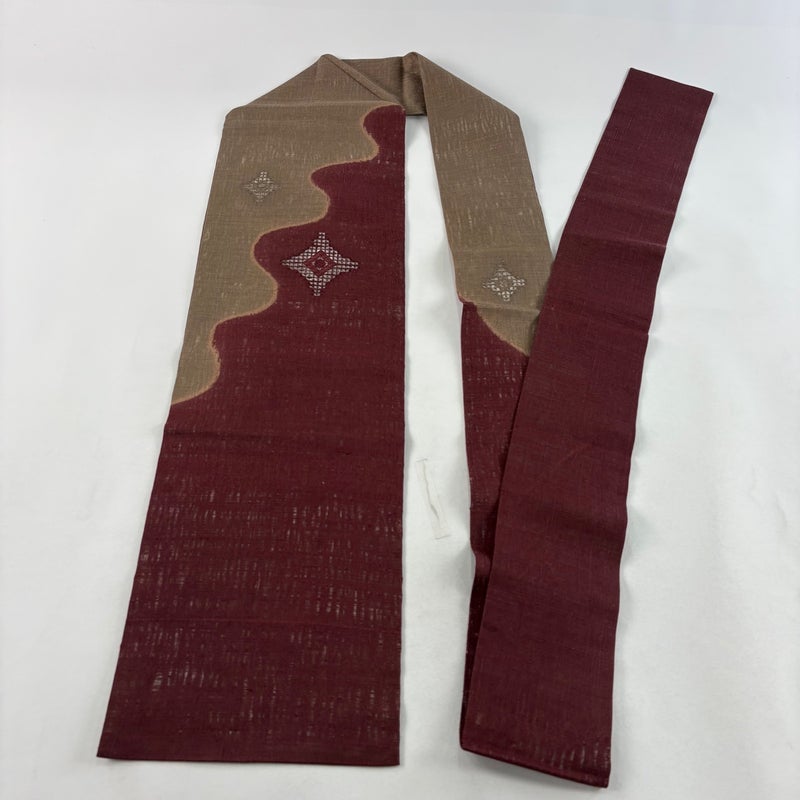 夏帯でございます。 普段使いでお使いいただける名古屋帯でございます。 カジュアルな装いに合わせてお使いください。 締め跡がございます。 垂境裏に生地のヨレ、表地所々に糸のヨレがございます。 リユース品としては良い状態で、まだまだご活用頂けると思われます。 ※なお、厳しく商品の状態確認を行っておりますが、記載の汚れ以外にも見落とし箇所がある可能性がある旨ご了承いただけますと幸いです。 沢山の商品の中からご覧いただき誠にありがとうございます。