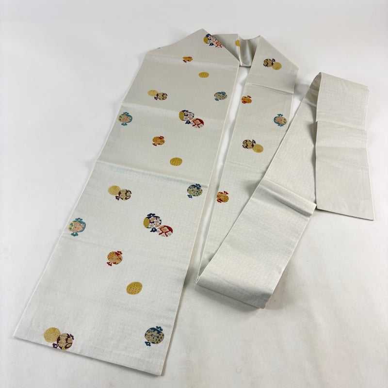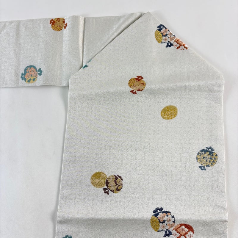 【着物ランク】秀品 【素材】正絹 【帯丈】約369.5cm 【帯幅】約30.5cm 【帯仕立て】仕立て上がり 【状態ランク】ランクB 【帯着用シーン】普段使いの洒落帯(紬・小紋)