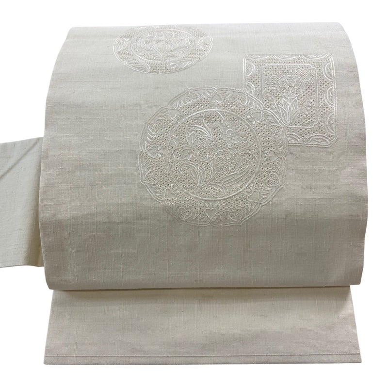 【名古屋帯】 白系 クリーム 秀品 A 帯丈366cm~400cm 9990-29990 美品 二万以下