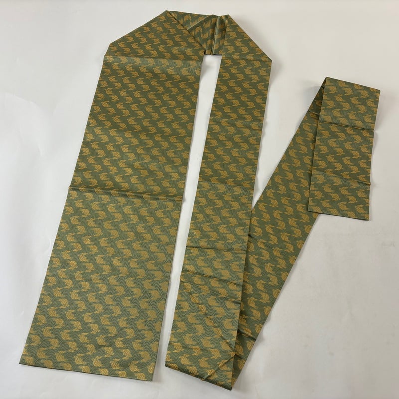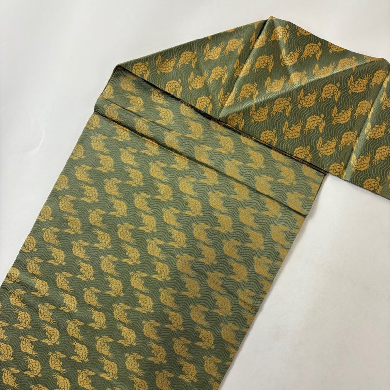 【名古屋帯】 緑系 よもぎ色 秀品 A 帯丈366cm~400cm 9990-29990 美品 二万以下