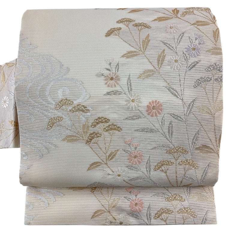 【着物ランク】秀品 【素材】正絹 【帯丈】約369cm 【帯幅】約31.5cm 【帯仕立て】仕立て上がり 【状態ランク】ランクB 【帯着用シーン】セミフォーマル(色無地・付下げ)