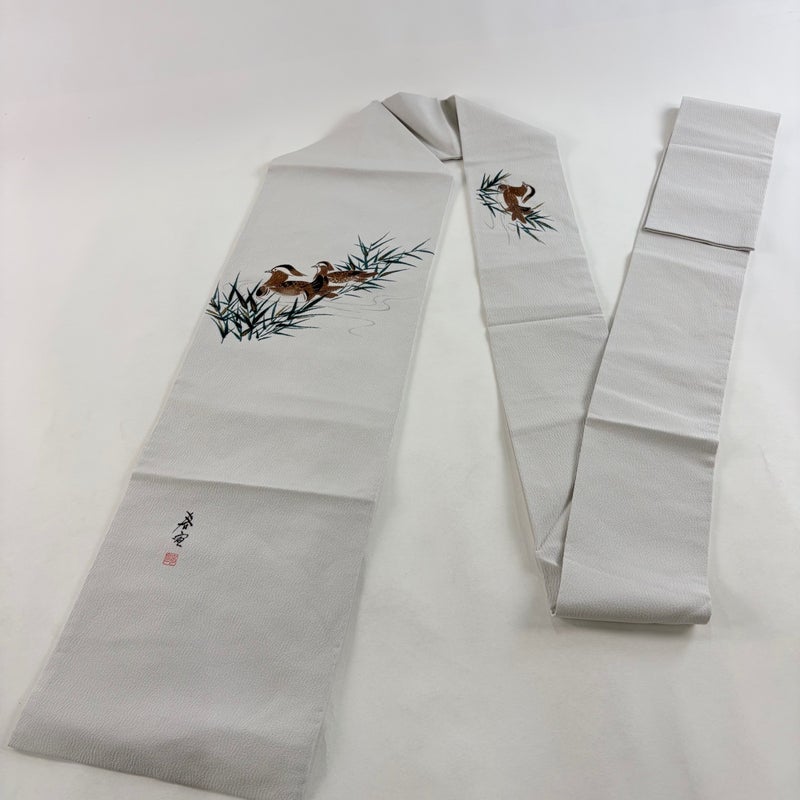 【名古屋帯】 灰色系 灰色 名品 A 帯丈356cm~365cm 9990-29990 美品 二万以下