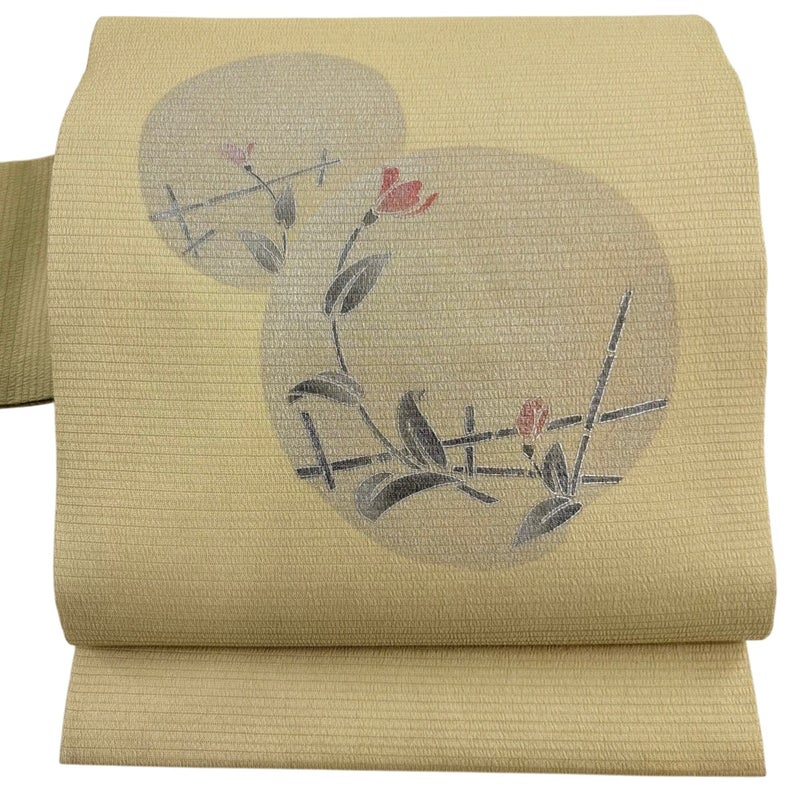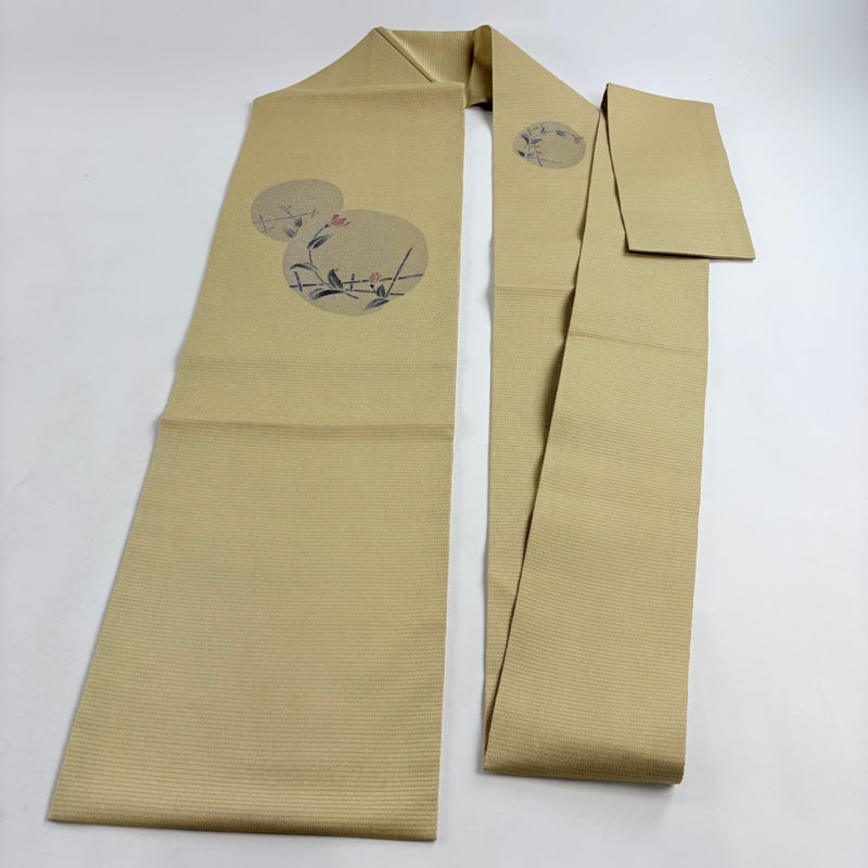 【名古屋帯】 黄色系 薄黄土色 秀品 A 帯丈366cm~400cm 9990-29990 美品 二万以下