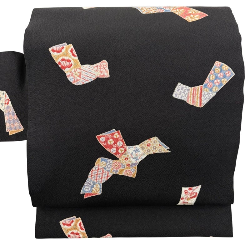 【名古屋帯】 黒系 黒 秀品 A 帯丈355cm以下 9990-29990 美品 二万以下