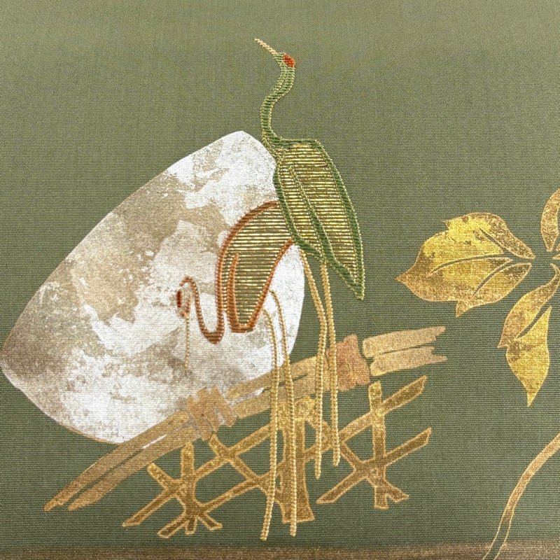 セミフォーマルでお使いいただける名古屋帯でございます。 見る人に重たい印象を感じさせない女性ならではの、気品豊かな一品です。 締め跡がございます。 お太鼓柄付近に薄いシミ、お太鼓柄部分に金銀彩の変色がございます。 裏地に薄いシミがございます。 リユース品としては良い状態で、まだまだご活用頂けると思われます。 ※なお、厳しく商品の状態確認を行っておりますが、記載の汚れ以外にも見落とし箇所がある可能性がある旨ご了承いただけますと幸いです。 沢山の商品の中からご覧いただき誠にありがとうございます。