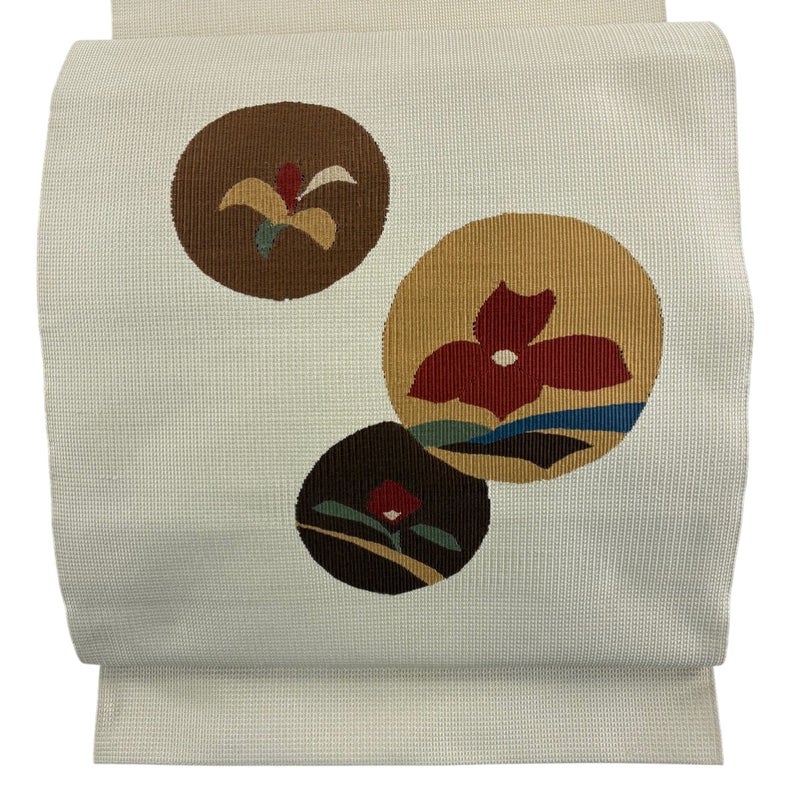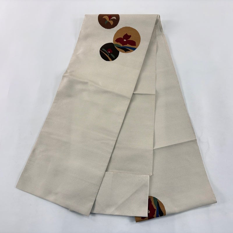 【名古屋帯】 白系 ベージュ 秀品 A 帯丈366cm~400cm 9990-29990 美品 二万以下