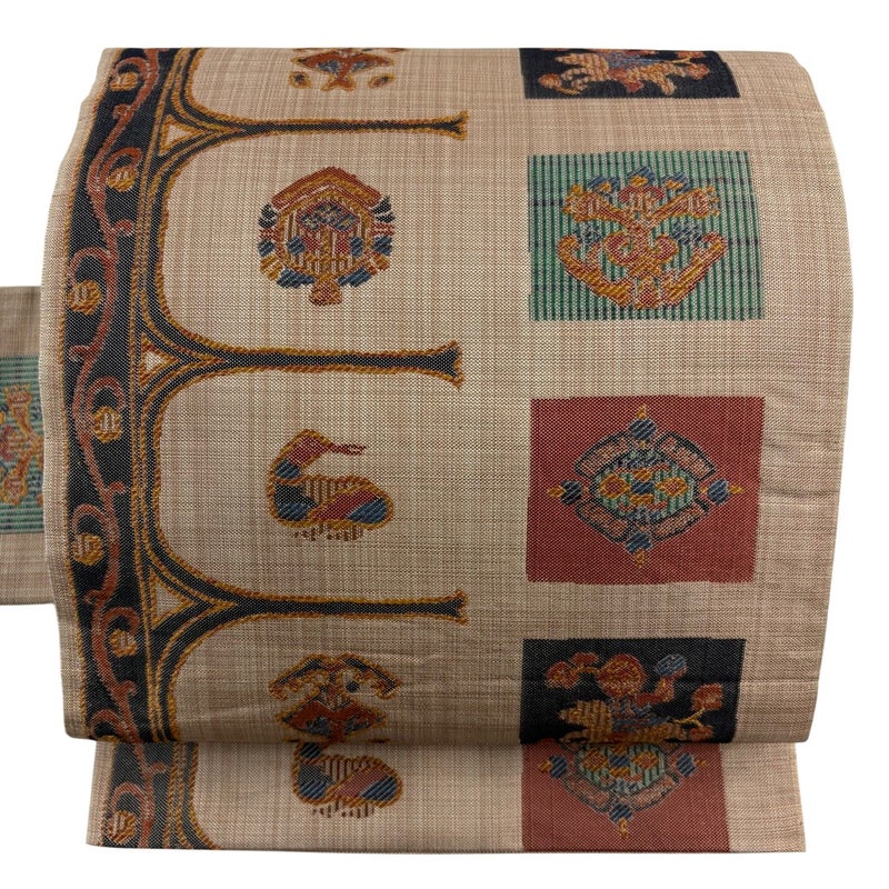 【着物ランク】秀品 【素材】正絹 【帯丈】約362.5cm 【帯幅】約30cm 【帯仕立て】仕立て上がり 【状態ランク】ランクB 【帯着用シーン】普段使いの洒落帯(紬・小紋)