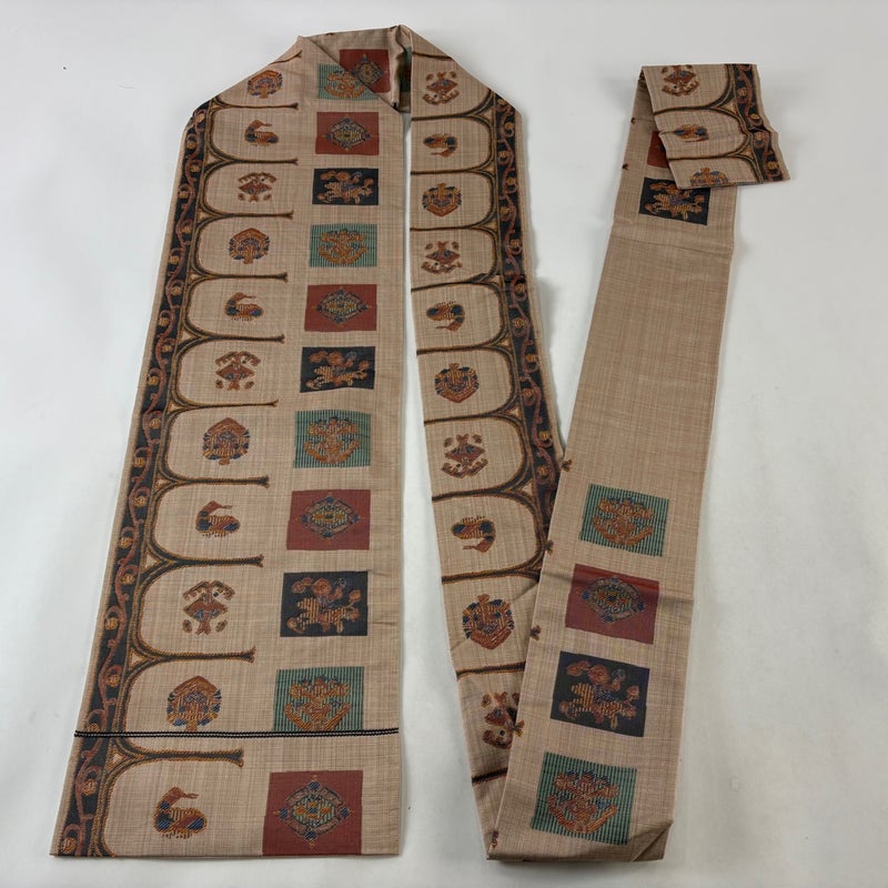 【名古屋帯】 茶系 薄茶色 秀品 B 帯丈356cm~365cm 7990-9980 二万以下