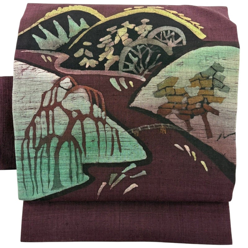 【名古屋帯】 紫系 濃紫 優品 B 帯丈356cm~365cm -3980 二万以下